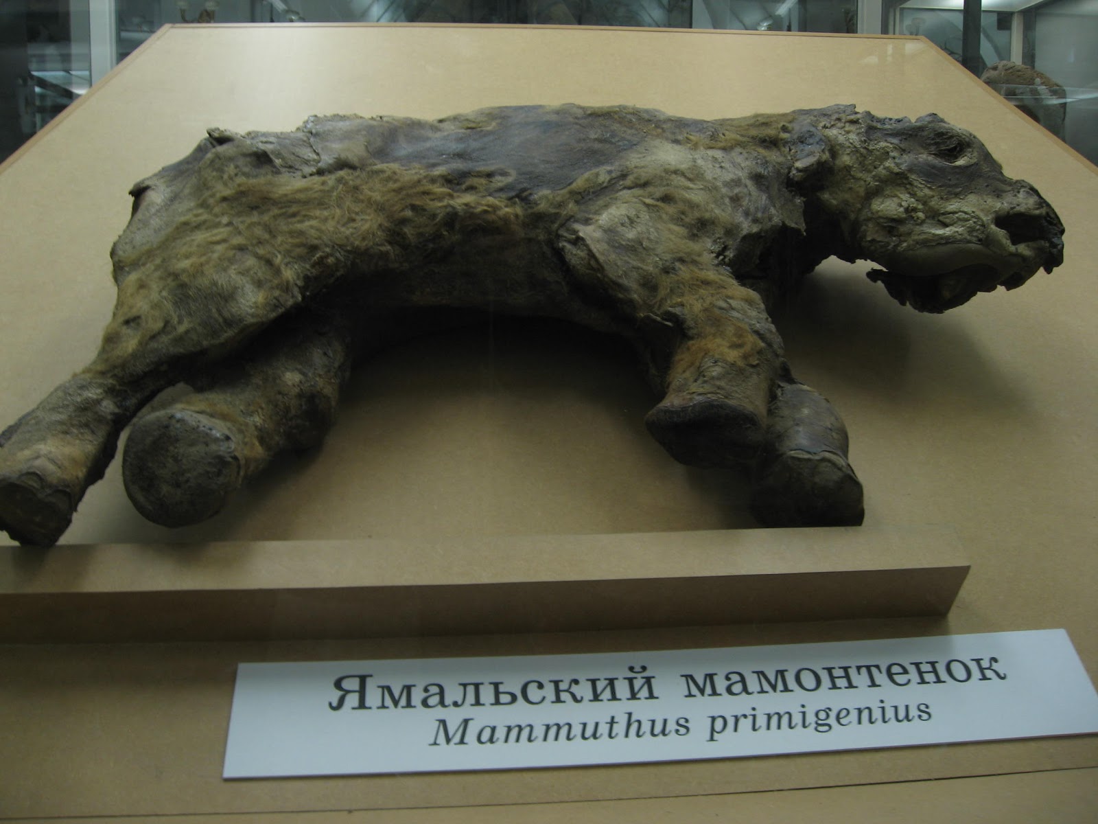 A frozen baby mammoth. Sadly there's not room here for my photos of liquid preserved squid, the giant mammoth without much hair left, the giant crabs and vultures, and hairy camels. There were also Siberian wolves who looked totally nasty("He is scared of the wolves," Antonia whispered to me. "In his country there are very many, and they eat men and women.") and anaconda snakes as thick around as my waist. All stuffed, of course.